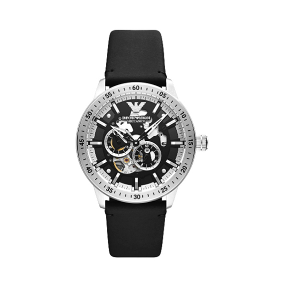 此款 EMPORIO ARMANI 机械腕表,将现代风格与优雅稳重巧妙融合,以镂空表盘与测速仪顶圈细节,描摹前卫个性。
