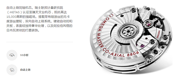 欧米茄自动上链机芯的运行状况取决于佩戴者的手腕摆动。上满链后,腕表将会达到技术规格里对应的动力储存值。