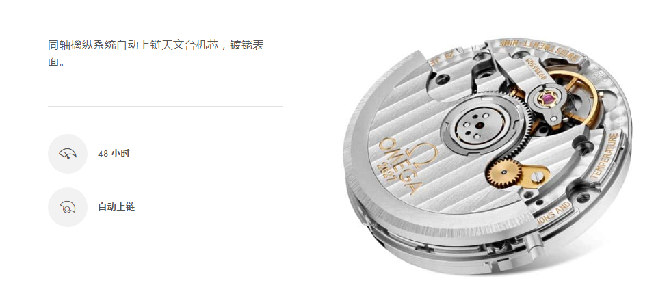 欧米茄自动上链机芯的运行状况取决于佩戴者的手腕摆动。上满链后,腕表将会达到技术规格里对应的动力储存值。