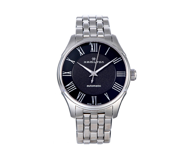 | 商品编码 | E993956 | 商品名称 | Hamilton汉米尔顿爵士系列精钢黑盘自动男士腕表 |