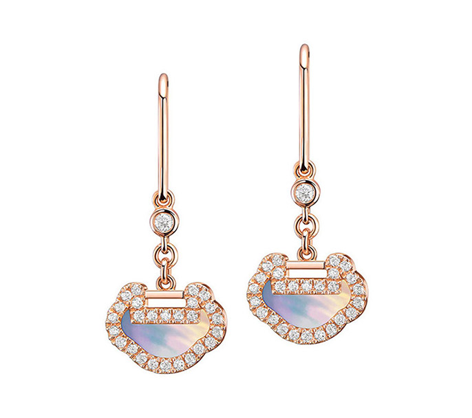 Qeelin Petite Yu Yi 18K 玫瑰金钻石及珍珠母贝耳环